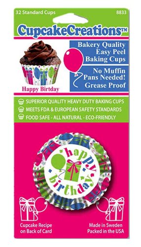 -. Feature : Cupcake and candy baking cups / Paper cups; 32 count package / Fun designs; cups measure 2 by 1 3/8 inches / Made in Sweden / See Cupcake Creations coordinating designs