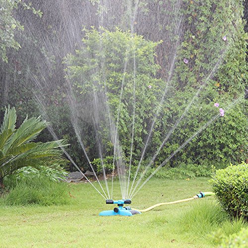 Kadaon Automatic Garden Water Sprinklers Lawn Irrigation System with Three Arm Lawn Sprinkler, Different Spray Direction and Rotation 360°