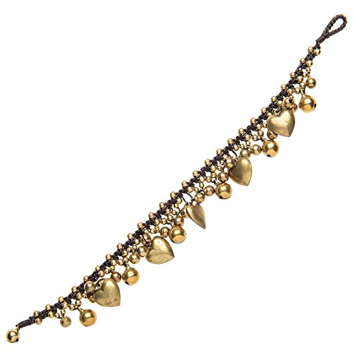 -. Title : 81stgeneration Women's Brass Gold Tone Heart Charm Bead Bell Ankle Anklet Bracelet, 26 cm