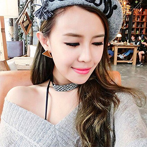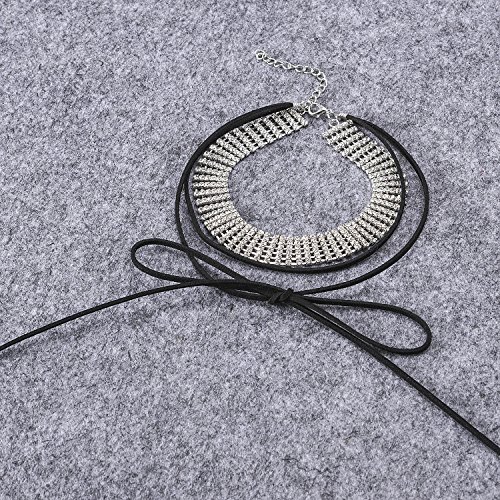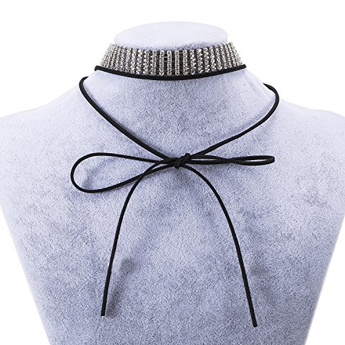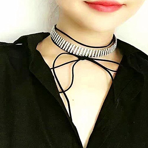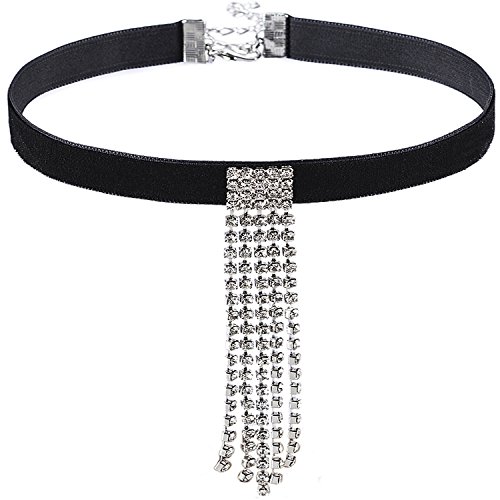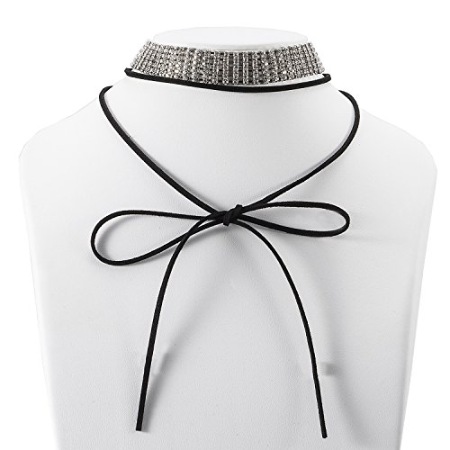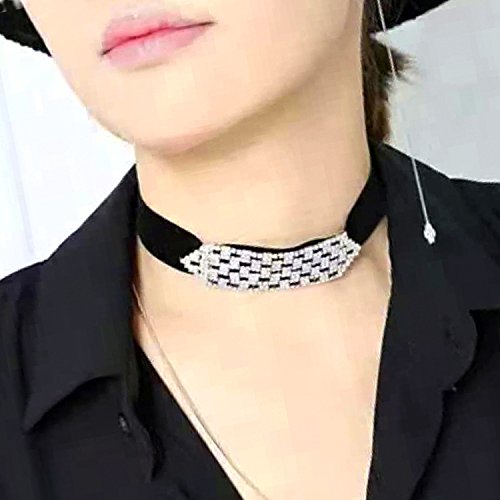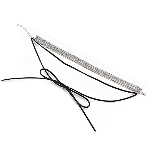 -. Title : Bridal Rhinestone Women Velvet Stretch Necklace Silver Tone - Ideal for Wedding, Prom or Party