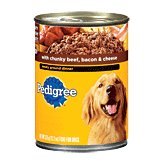 -. Title : Pedigree Meaty Ground Dinner with Chunky Beef, Bacon & Cheese Dog Food 13.2 oz