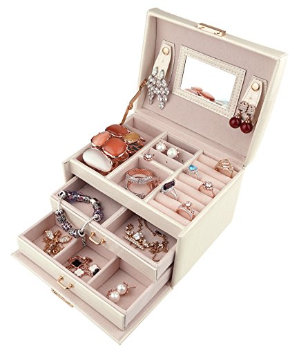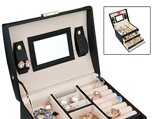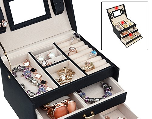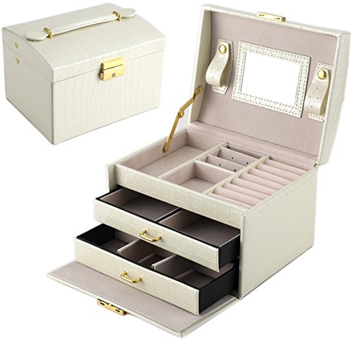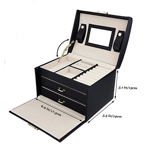 -. Feature : Featured with glossy surface and soft velvet, attractive in appearance, protect your jewelry from dust and scratches. / Multi-functional jewelry case with storage drawers, classifies necklaces, bracelets, watches, earrings, ear studs, hairpins, brooches and other jewelries in perfect order. / Handle and mirror are provided, lock with keys adds elegance and security. / The travel jewelry box is specially designed for journey, portable and space saving, the best gift to your girlfriend or wife. / Dimensions: 6.9 x 5.5 x 5.1 inches (L*W*H); Weight: 1.8 pounds. With 30 days money back, 1 year warranty and easy-to-reach customer service.