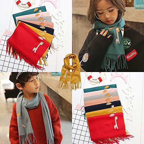 Binding : Apparel Product Description Description: ·Made of Imitation cashmere, soft warm. ·Dimensions: 150cm*25cm(approx). ·Suitable for over 2 years old kids (Unisex). ·Great for spring, antumu, winter, all the cold weather. ·Giraffe pattern adds fun, tassel design beautiful and stylish. Features: Material: Imitation cashmere. Colour: Navy,Red,Gray,Yellow,Green,Pink,Rubber Powder. Package: 1 * scarf. Note: Can Machine washable,but the best to hand wash. Due to different computer display problems, there may be a little color, this is a normal phenomenon.