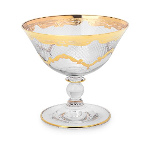 -. Feature : This set of classic touch dessert cups has been exquisitely designed and lavishly decorated / Glass with 24k decorative touches / What and elegant way to uplift your dining experience / Richly designed in the use / Measures: 5"d x 45"h