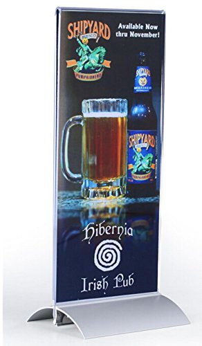 - 4" x 9" Counter Sign Holder for Hospitality or Retail Use. These counter sign holders, are modern looking, ideal for hospitality or retail environments! Place this sign frame on restaurant tables to promote a new menu item or drink special. Counter sign holders also called menu holders, or trade show displays are constructed from an acrylic frame mounted in an aluminum base. The acrylic frames display 4" x 9" graphics.
