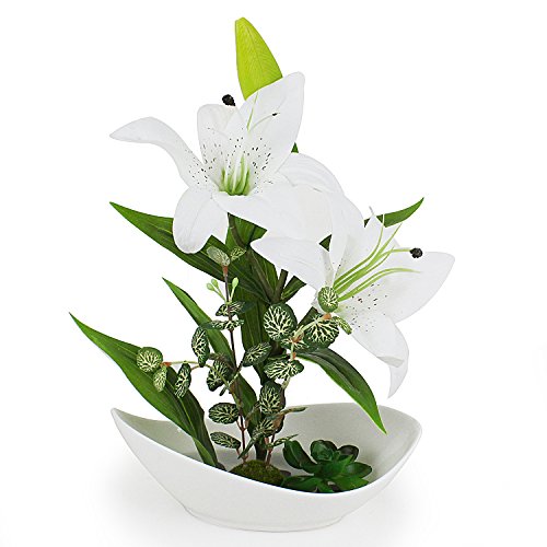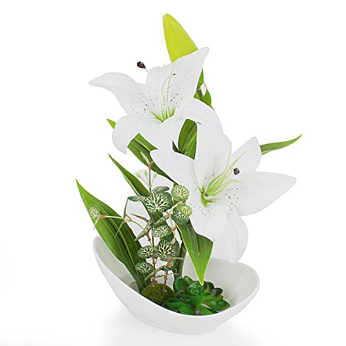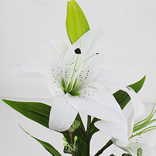 Plastic Realistic Perfume Lily with White Vase Artificial Flower Arrangement Table Party Centerpieces Home Decoration,White