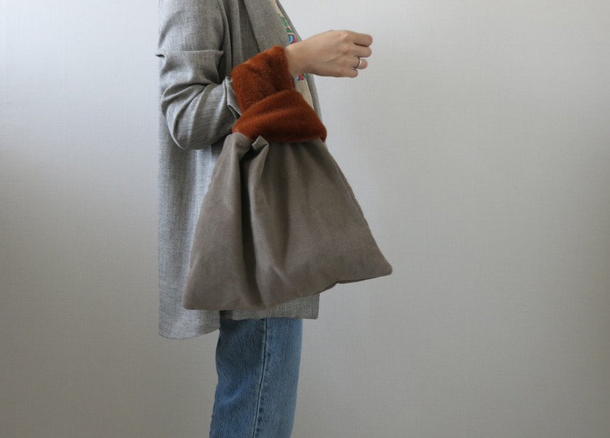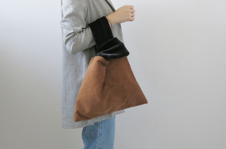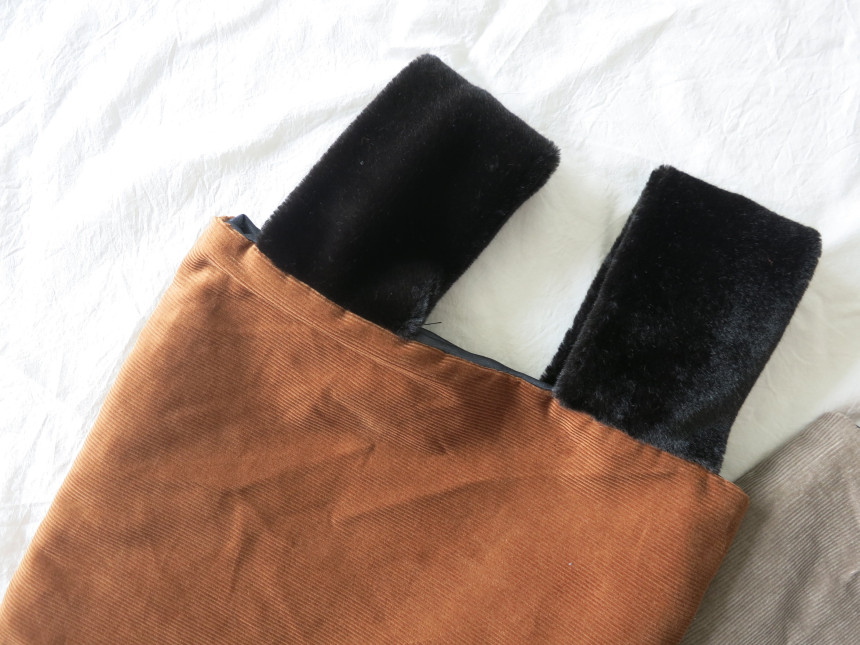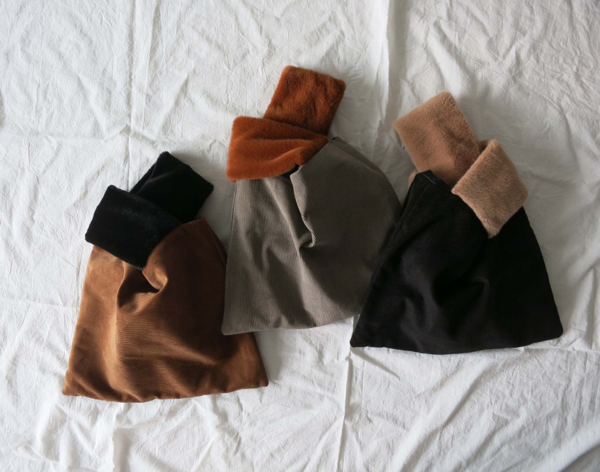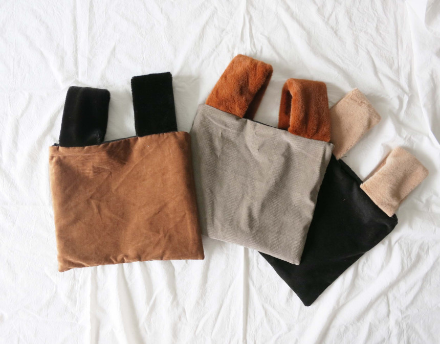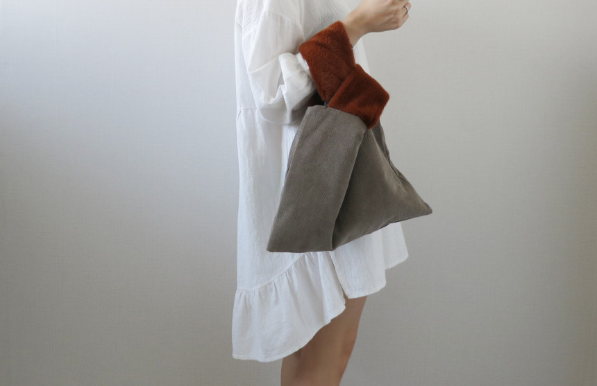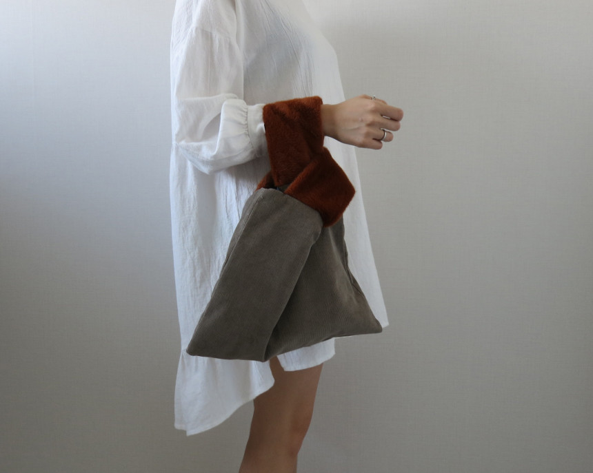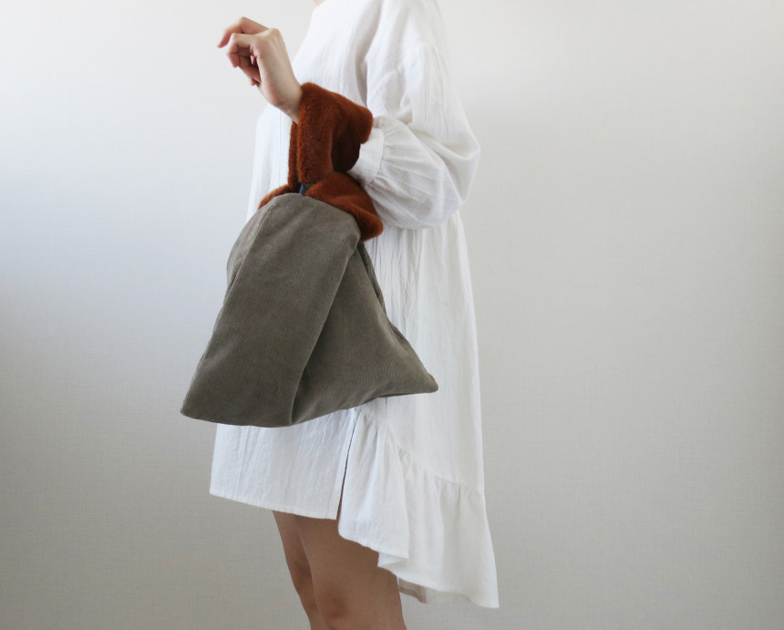 사랑스러움이 가득한 퍼 핸들 코듀로이 토트백이예요.
