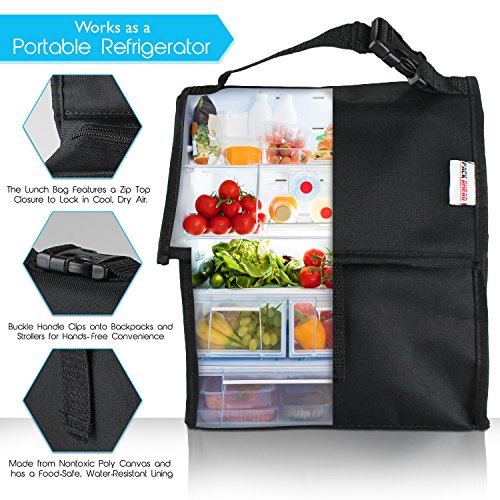 - CLEVER DESIGN : Features a secure zip top closure to seal in the cool dry air. A convenient buckle handle allows you to clip it onto your tote, backpack & your stroller for hands-free convenience, allowing you to easily take your healthy food & snacks wherever you go