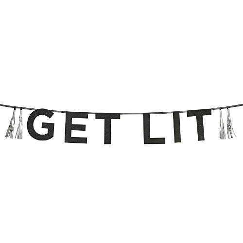 Talking Tables Say it with Glitter Get Lit Glitter Banner Black 10ft for Parties and Celebrations,