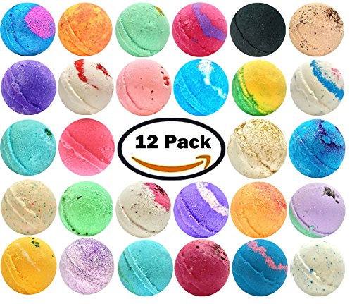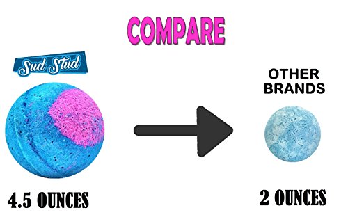 -. Feature : DOUBLE the size + DOUBLE the amount of other brands = NOT double the P.R.Ice! Buyers receive one dozen large bath bombs (4.5oz each) -- THAT'S MORE THAN 4 POUNDS of bath fizzies! These large bath fizzers are the same size as Lush bath bombs but for a fraction of the cost! 12 bombs per set; assortment is random; NO REPEATS in any grab bag. We stock over 100 fragrances at any time - wide variety lets you try out new scents. Large size so you need only one bomb per bath; more baths and more savings! / Treat yourself to a truly RELAXING spa treatment with Sud Stud Bath Bombs. Each organic bath bomb is paraben-free, phthalate-free, and sulfate-free but loaded with all-natural ingredients to promote good health and relaxation. Real sea salt increases circulation while you soak to help detox your skin. Organic shea butter moisturizes and nourishes dry, itchy skin better than body lotion. Sunflower oil has high levels of Vitamin E, A, C, and D to protect against blemishes. / Sud Stud's natural bath bombs are PROUDLY handmade in the United States in small, fresh batches. Our design, manufacturing, packaging, and shipping are all done on American soil. Every purchase supports families of hardworking Americans employed in producing our luxury bath products. PLUS, every bath bomb is cruelty-free with NO animal testing and NO animal ingredients. These 100% vegan bath bombs are perfect for those who love luxurious organic beauty products without the spa P.R.Ice tag. / Mother's Day Gifts: great gift for busy Moms who need a stay-at-home spa day. Limited time sale P.R.Ice makes this bath bomb set the perfect gift set for women, moms, sisters, girlfriends, teens and kids -- everyone loves bath fizzies! Each bath bomb is individually wrapped in its own cellophane bag with colored ribbon making it easy to share with family or friends. Or split up as thank you gifts or party favors at birthday parties, bridal showers, bachelorette parties, and baby showers. / What our customers are saying: "These bath bombs are huge!" "My kids love these more than bubble bath!" "These bath bombs smell so nice but the colored water really gives my bath an extra touch." "Best bath bombs on Amazon, hands down." "I used to use bath salts and mineral powder but now I just need one of these bath fizzies and it softens my bath water right away with beautiful fragrance." "The fragrance in these bath bombs is enough to scent my whole house for hours after my bath."