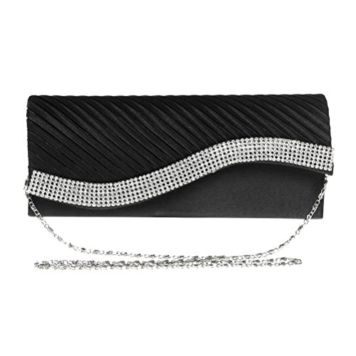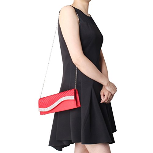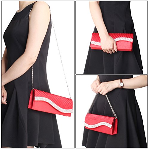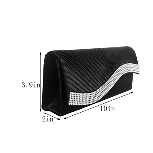 -. Feature : UNIQUE DESIGN: This clutch purse is made of high quality satin, decorated with sparkling rhinestone, chic and noble / DIMENSION: 10 (L) * 3.9 (W)* 2 (H) Inch; This big capacity clutch purse can fit everything you need (smartphone, a few bobby pins, eyeglass, makeup products) / SAFE CLOSURE: Flap with magnetic snap closure, AVOID YOUR BELONGINGS SLIPING / CARRYING OPTIONS: You can hold this clutch purse IN YOUR HAND or you can also use it as a SHOULDER BAG or CROSS BODY BAG with the chains coming with the bag (detachable strap is 46.49 inch ) / OCCASIONS: Great for wedding, party, prom, fancy events. Just get this clutch purse to have a wonderful night