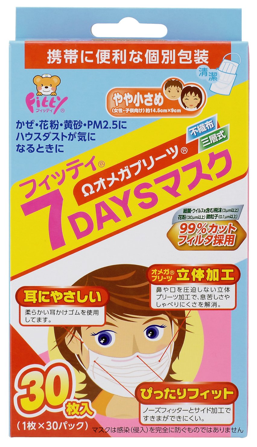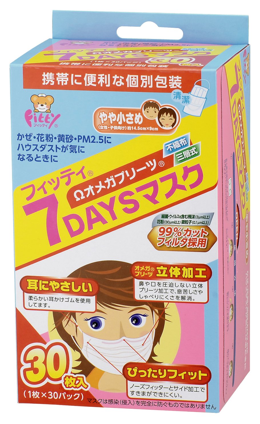 Japan Facemask - Fittings 7DAYS mask slightly smaller size 30 sheets white input *AF27*
