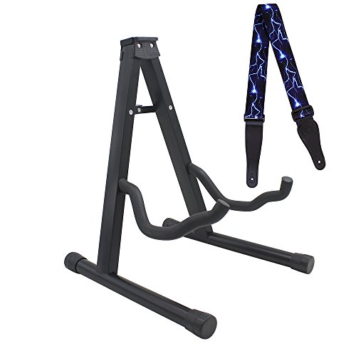 Description: - Folds flat for convenient storage and portability - Non-slip feet provide extra stability - A-Frame design with bracket arms - This is a adjustable and durable guitar strap - The guitar strap has extended PU leather ends, meet your needs - Material: Steel, sponge, plastic, polyester(strap)