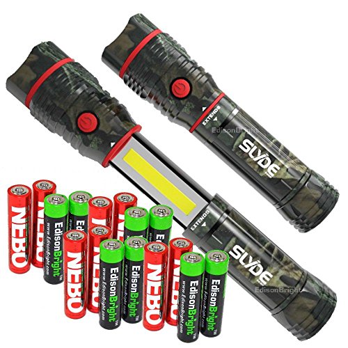 Two Pack: Nebo Slyde Camo 250 Lumen LED flashlight/Worklight 6383 and 8 X EdisonBright AAA alkaline batteries bundle