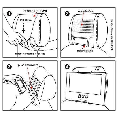 - Feature : Works well with all 7 inch - 10 inch Portable DVD Player / Adjustable strap allows for easy, quick and secure mounting to car headrest / Accommodates Swivel Screen Players / Constructed from long-wearing and stain resistant elasticated Velcro with metal clips to hold your portable device securely in place / Very neat and elegant design