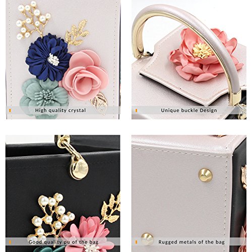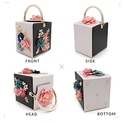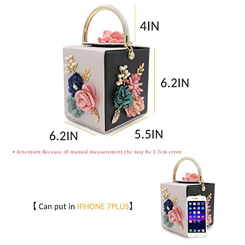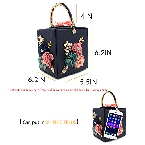 -. Feature : { Versatile Occasion }: Can be as evening clutch to special occasion, as wedding, banquet, prom, cocktail. Also can be as daily clutch to shopping, family party, dating even as gift to your friend. / { Feature }: Flower Decorated in the surface which made of fabric, pearl beadeds, and metal leaves. / { Capacity } 6.1 x 7.3 x 7 inches ( 15 x 18 x 19 cm ), large capacity can fits in iPhone 7plus and left some space to add other things properly. / { Open Way }: The hasp with magnet is easy for you open and close, decorated with flower made of fabric, pearl beaded and metal leaves. / { Protect the Bottom } The bottom decorated some conical flat head barrel rivets which looks like bucket shape to protect the bottom from abrasion
