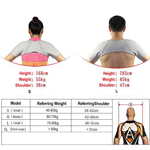 -. Feature : Bamboo Charcoal Fiber Shoulder Support Brace; Color: light gray / Effective Warming support for treatment and prevention Of injuries shoulder / Ideal for all sporting activities and everyday use by men and women. / Lighter weight helps relieve pain caused by shoulder pulls or strains; / Relieve over use injuries,strains,damaged muscles,frozen shoulder,good for Arthritis,Rheumatic Pain.