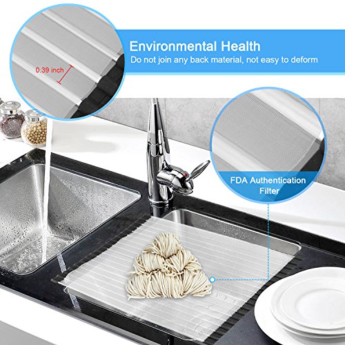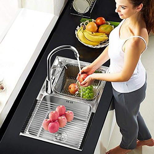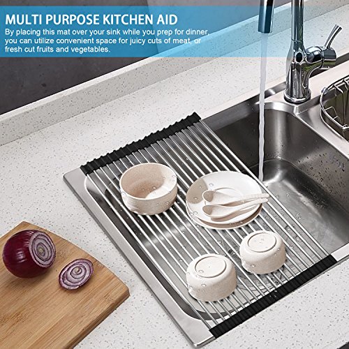 -. Title : Over The Sink Drying Rack - Samshow Roll Up Dish Drying Rack (Square Rod Design) Large Size 17.78" x 12.75" Stainless Steel with Anti Slip Silicone Cover