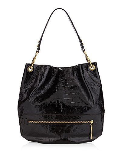 -. Title : orYANY Lucy Croco Embossed Patent Leather Black Large Hobo Tote