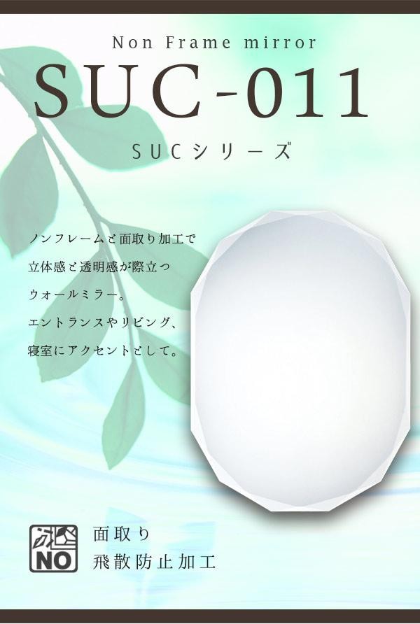 ノンフレームと面取り加工を施したシンプルでおしゃれなウォールミラー。お部屋に合わせてヨコ吊りもしていただけます。