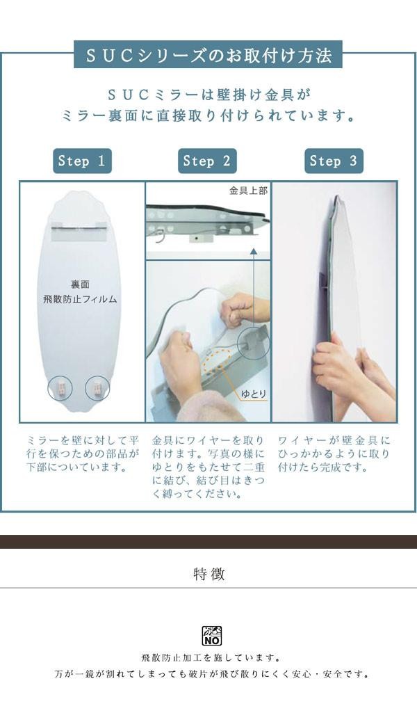 fk094igrjsノンフレームと面取り加工を施したシンプルでおしゃれなウォールミラー。お部屋に合わせてヨコ吊りもしていただけます。 製造国:中国 商品サイズ:W60×D3×H80cm 重量:5500g 仕様:ミラー:5mm厚面取り・飛散防止加工ヨコ吊り可 付属品:Xフック、ピン、ワイヤー(約77cm)×1本※お届け地域により、別途運賃がかかる場合やお届けできない場合がございますので、お問い合わせ下さい。