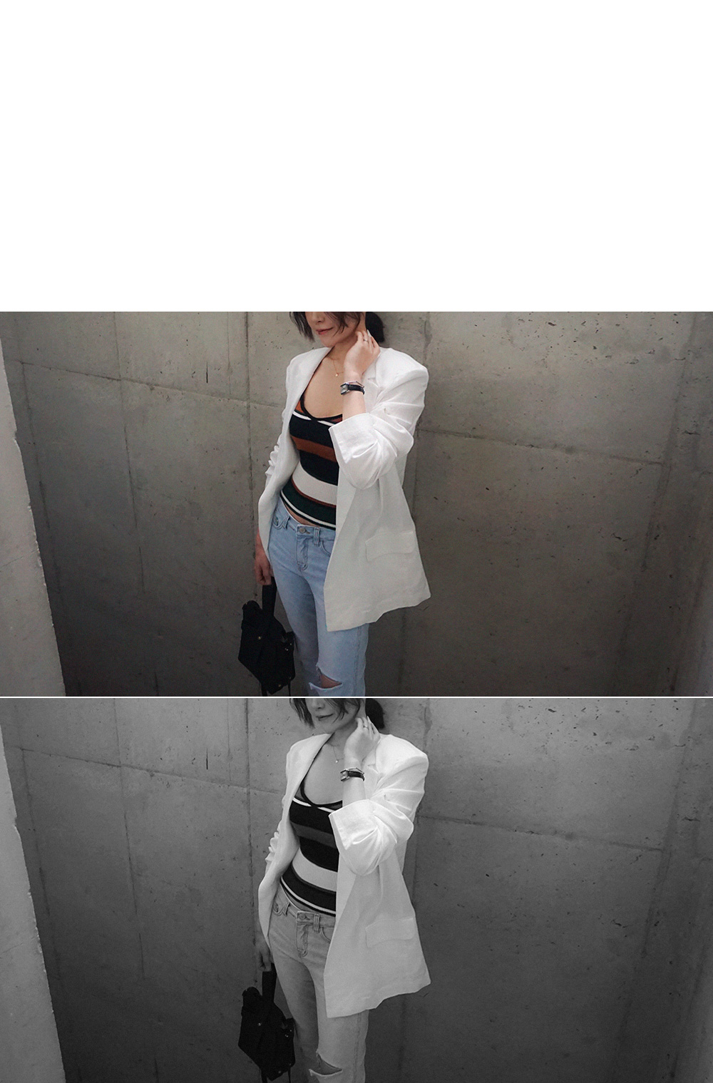 어깨에는 패드가 들어가 있는 살짝 과장된 실루엣이