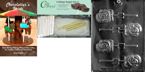 Cybrtrayd 45StK25TBk-T041 Turkey Lolly Thanksgiving Chocolate Mold with Chocolatier's Bundle, Includes 25 Sticks, 25 Cello Bags, 25 Gold Twist Ties and Chocolatier's Guide