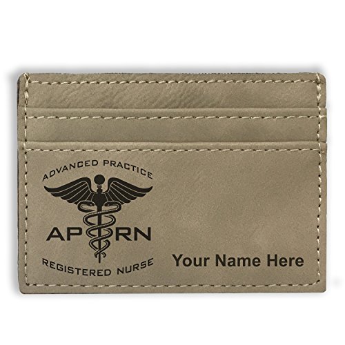 -. Binding : Apparel -. Brand : SkunkWerkz -. ClothingSize : Medium -. Color : Light Brown -. Department : mens -. EAN : 0654975836647 -. Feature : The Money Clip Wallet is laser engraved with the image that you see in the photo. / Your name or personalized message will be engraved on the wallet for free. / Synthetic leather construction. Includes space for 3 credit cards. / You may have one line of engraved text - 20 characters maximum. / Click the "Customize Now" button to begin customizing your wallet. -. ProductGroup : Apparel -. ProductTypeName : ACCESSORY -. Size : Medium -. Title : Money Clip Wallet - APRN Advanced Practice Registered Nurse - Personalized Engraving Included (Light Brown) -. UPC : 654975836647