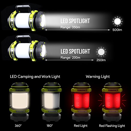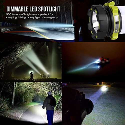 LE 500lm USB Rechargeable Camping Lantern 2600mAh Power Bank Super Bright Flashlight 3 Modes Lamp Dimmable LED Spotlight Outdoor Searchlight Area Light IPX4 Water Resistant Torch