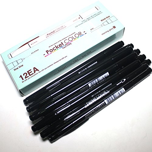 -. Binding : Office Product -. Brand : Morning Glory -. EAN : 8801237675328 -. Feature : Pocket Color Pen - Twin Type. Water soluble ink / Like other highlighters, this pen needs to close its caps after you use it. / Please listen carefully "Click" sound when you close the cap. One side nib is fine line(Pen Type: 0.3-0.4mm) and other side nib is thick line(Highlighter Type: 3.0mm) -. Label : morning glory -. Manufacturer : morning glory -. MPN : 3258067532 -. PartNumber : 3258067532 -. ProductGroup : Office Product -. ProductTypeName : WRITING_INSTRUMENT -. Publisher : morning glory -. Studio : morning glory -. Title : x12 Morning Glory Pocket Rainbow Colors Both Side Tip Pen - Black - 12 pcs
