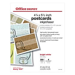 -. Feature : Office Depot Brand / Inkjet / Laser Post Cards / 4 1/4In. X 5 1/2In. / Bright White / Pack Of 200