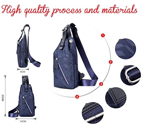 -. Feature : Material:We chose the waterproof,light,non-toxic and wearable oxford cloth.You can choose between blue and black bags. / Select texture hardware accessories and strong tenacity car suture.Adjustable shoulder strap.Multiple use of a single farewell. / Dimensions:12.20"L x 5.51"W x 2.36"H(31* 14 * 6cm).Computer books,business documents,small items,not crowded. / Hidden headphone:The headphone cord is pulled from the headphone hole to protect the phone from being affected. / 45¡ãfront zipper bag:It's easy to pick up things.