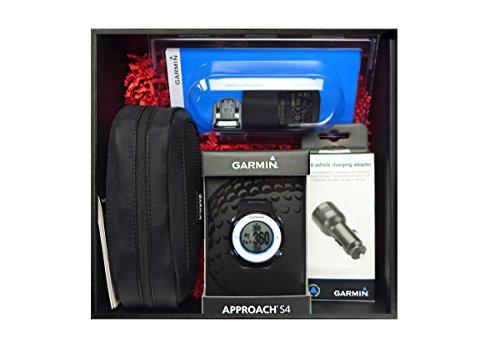 -. Feature : Gift Box includes: Garmin Approach S4 (blue/black) Golf GPS Watch, USB Charging Cable, A/C Wall Charger, Garmin Carrying Case & Dual USB Car Charge Adapter (all in a black gift box with red crinkle paper filler, and a red bow!) / Green view button Dedicated button shows true shape and layout of the green by one simple push, and then you can manually move pin to day's location / 60-Day Buy & Try Return Policy Guarantee - Use it for 60 days and if you don't like it, send it back for a FULL refund! / Hi-res touchscreen High-resolution, sunlight readable, glove-friendly touchscreen display