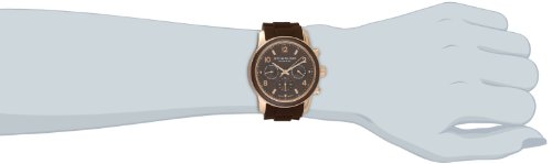 Feature : Round watch with rose-tone stainless steel case featuring brown dial with rose-tone accents / Swiss-quartz movement with analog display / Protective Krysterna crystal dial window / Features brown high-grade silicon rubber band with rose-tone buckle closure / Water resistant to 165 feet (50 M): suitable for swimming and showering