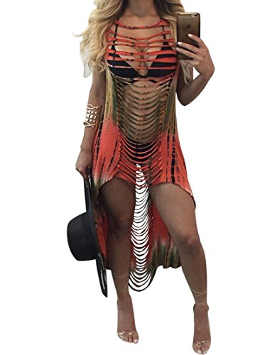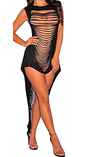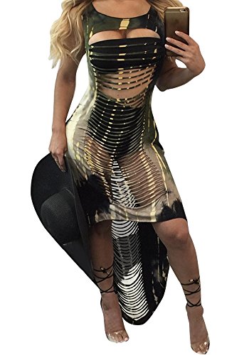 Imily Bela Women's Summer Sexy Sleeveless Cut Off Ripped Hole Distressed Loose Tank Dress