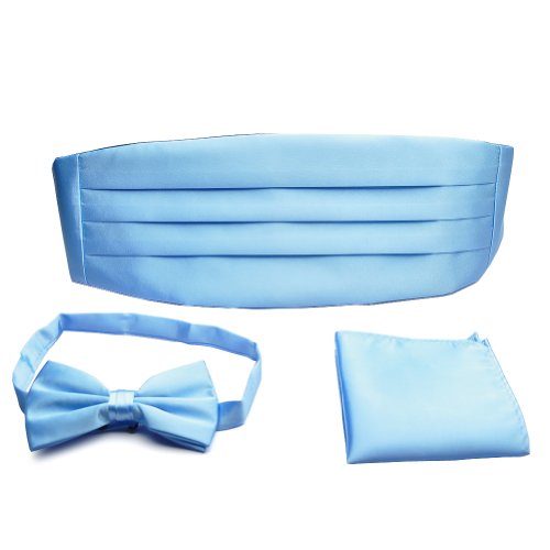 -. Feature : Brand: PenSee / Material: Silk / Size:Bow tie 56 * 6.5(cm), Pocket Square 21.5 x 21.5(cm), Cummerbund 92.5 * 13.5(cm) / The Cumberband and bowtie is a Standard One Size Fits All. / Set Including: Cumberbunds, Bow Tie, Pocket Square