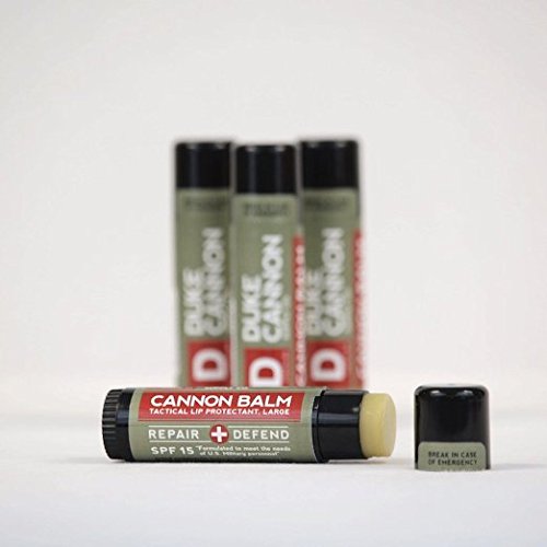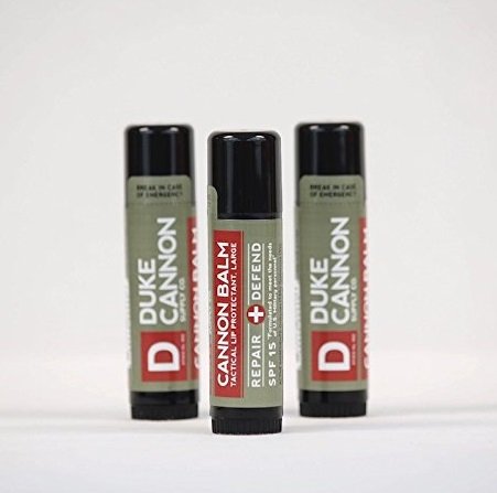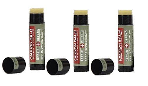 At .56 oz, Cannon Balm is nearly 4x the size of the stuff they sell in grocery store check-out lanes. It's made of premium, natural and organic ingredients and formulated with SPF 15 to protect against UV rays. Tested by active duty military personnel, the unique formulation holds up in the harshest conditions, even withstanding 125 degree temperatures. Has a fresh mint taste that appeals to men, not teenage girls.
