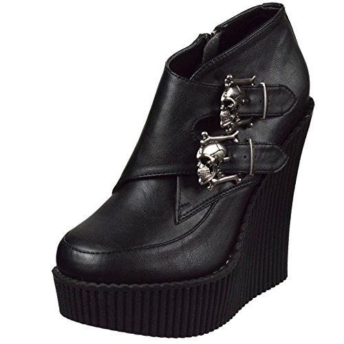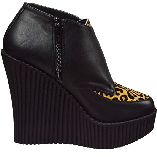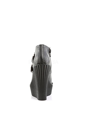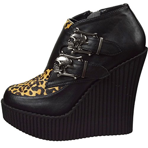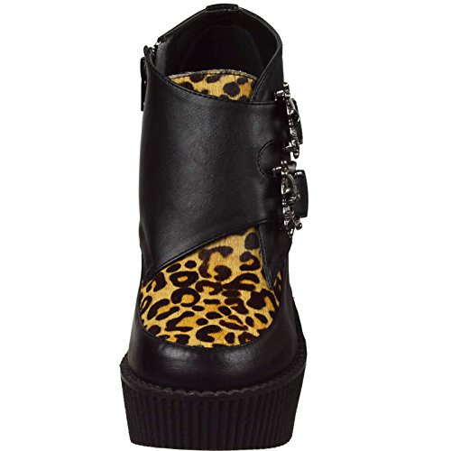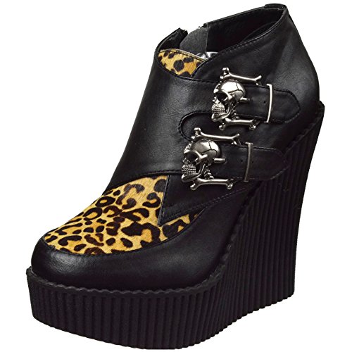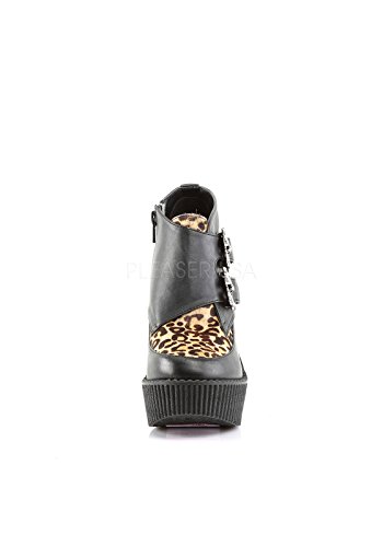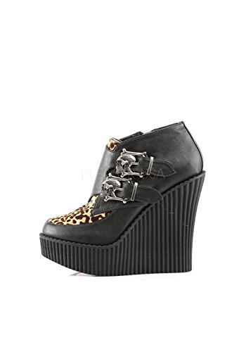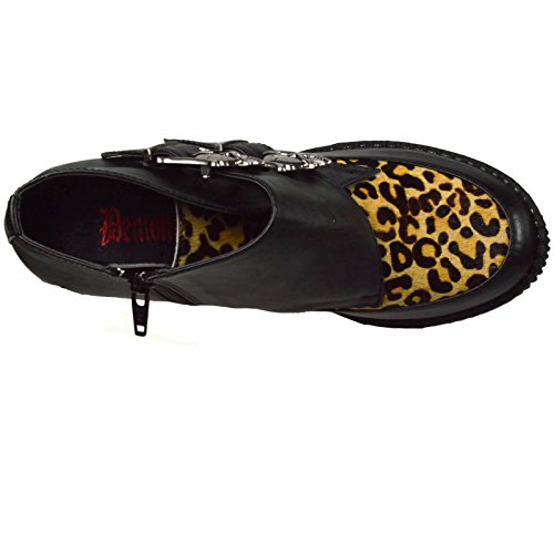 Studio : Demonia Publisher : Demonia Binding : Apparel Product Description CREEPER-306 Wedge Platform Monk Shoe Women's Black/Leopard By Demonia. CREEPER-306, a 5-14" wedge platform Monk Creeper with double gunmetal skull buckles at the outer side. It also features Vegan leopard faux an inside zip closure and is made with vegan leather. 0