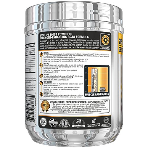 MyoBuild 4X is the most advanced BCAA and recovery formula on the market! A 4:1:1 ratio of BCAA featuring a scientifically studied dose of leucine, plus isoleucine, valine, betaine, taurine and tart cherry work to build muscle, increase strength, improve recovery and decrease catabolic activity!