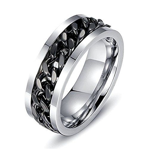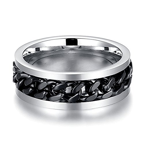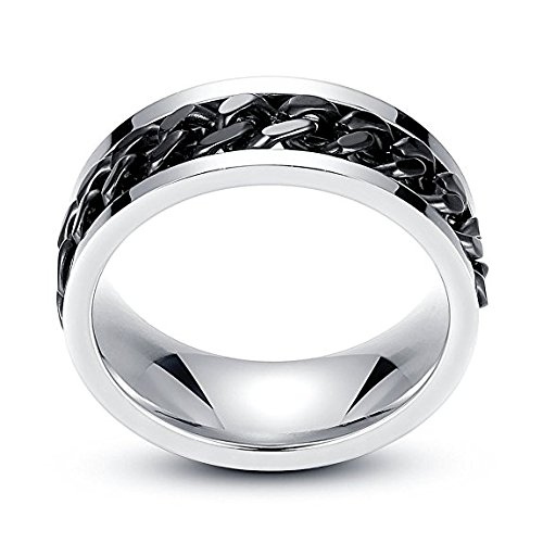 LEEYA NL11 8MM Stainless Steel Rings for Men Engagement Wedding Band Chain Ring, Size 7-13 (13, Black)