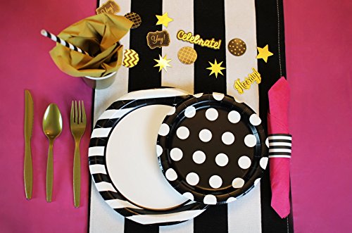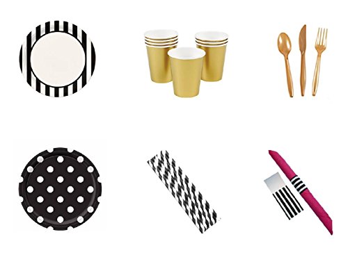 - CHIC GLAM DECOR Let us help you impress your guests and take the guess work out of your party planning. This girls night out package includes 8 hot pink party napkins, 8 black and white striped party napkin rings, 8 black and white striped party plates, 8 black and white polka dot dessert party plates, 8 gold party cups, 8 black and white striped straws, 8 piece plastic silverware set and party planning tips PDF included