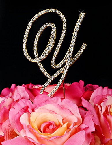 Unik Occasions Victorian Crystal Rhinestone Wedding Cake Topper, Small, Letter Y, Gold