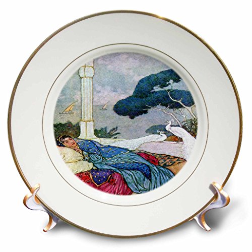 3dRose cp_212908_1 Print of Vintage Lady From in Dia with Peacocks Porcelain Plate, 8"