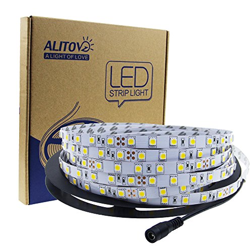 ALITOVE DC 24V 32.8ft Warm White 5050 LED Flexible Strip Light 10M 600 LEDs 60LEDs/M Not Waterproof LED Rope Light Strips for Home Garden Commercial Area Lighting