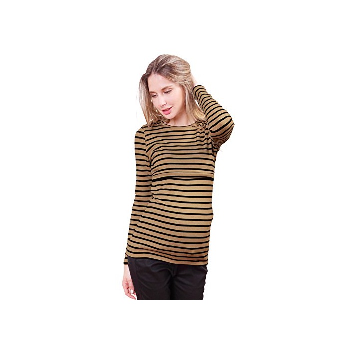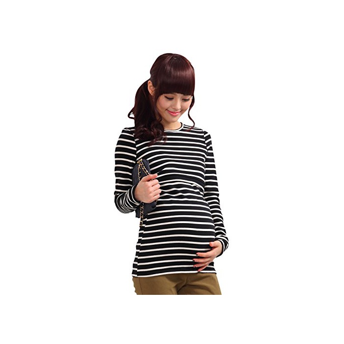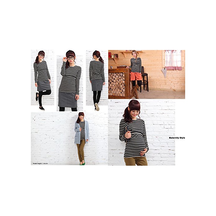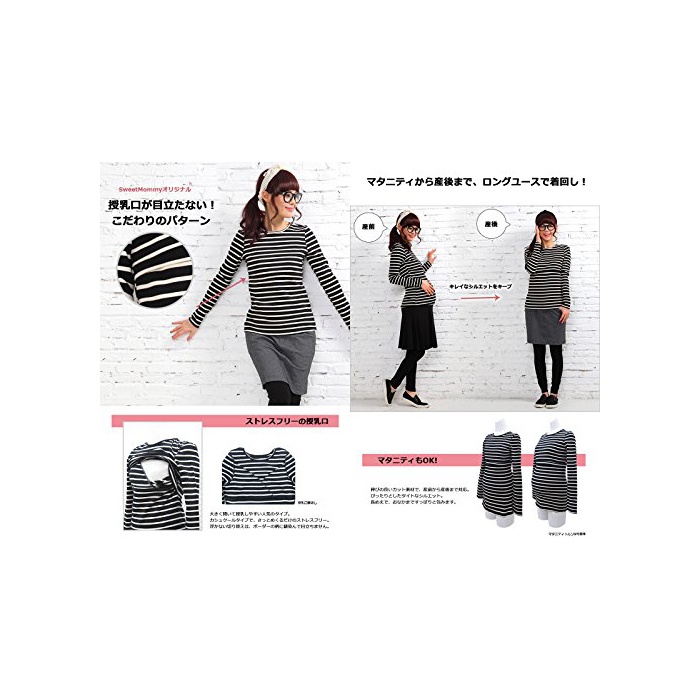스위트마미 Sweet Mommy 따스한 상질 뒤기 모장길이 부드럽게 부드러움등인지(든가) 슬림 피트 보더 롱 길이 수유 T셔츠 미실루엣 추동 베이직 수유복 마타니티