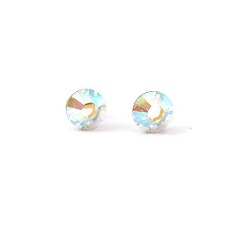 -. Brand : MC Studio N Design -. Color : Rainbow -. Department : womens -. IsAdultProduct : 0 -. ProductGroup : Guild Product -. ProductTypeName : GUILD_JEWELRY -. Title : Rainbow Shinny White Swarovski stud earrings for girls and woman - 7mm- handmade with love - earrings changing colour under light - Swarovski June Birthstone - one pair