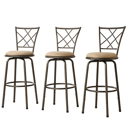 -. Brand : Tribecca Home -. Color : beige -. Feature : Avalon bar stools fit almost any dining decor 360-degree swivel design / Adjustable stools can go from 24 inches to 29 inches high / Stools come in a set of three Cross-back design / Constructed of dark brown metal tube frame Microfiber seat is peat in color / Measures 24.25 inches long x 22.12 inches wide x 19.75 inches high -. Label : Tribecca Home -. Manufacturer : Tribecca Home -. Model : 111855C971W[3pc] -. ProductGroup : Furniture -. ProductTypeName : HOME_FURNITURE_AND_DECOR -. Publisher : Tribecca Home -. Studio : Tribecca Home -. Title : Tribecca Home Avalon Quarter Cross Swivel Counter Barstool