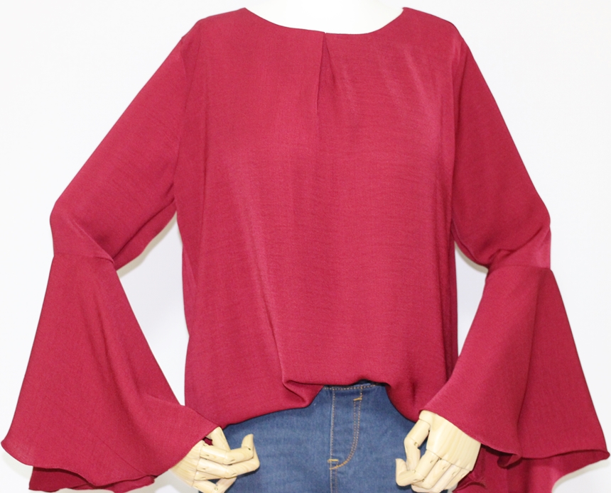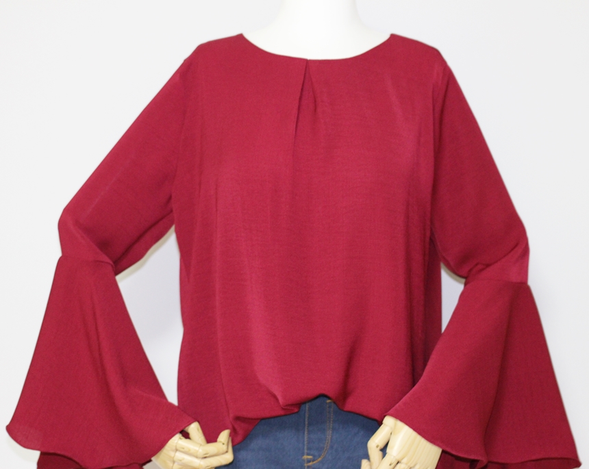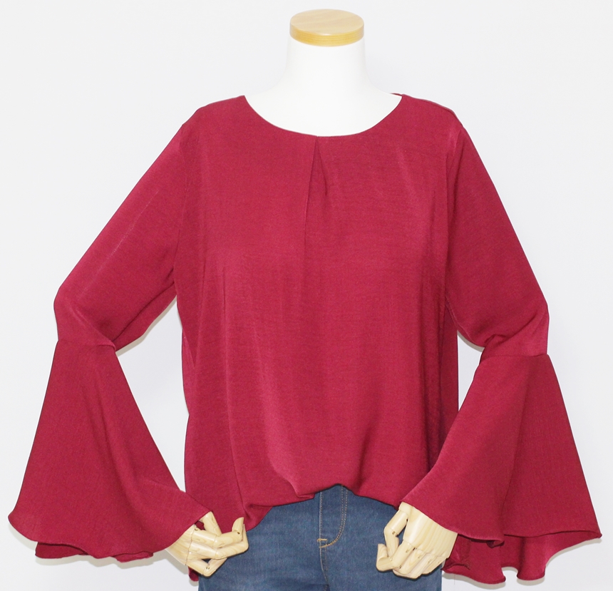 Trumpet Sleeveless Autumn Blouse Wine Frills Waist Look Feminine Women's Office Look Shirts Daily Coordination