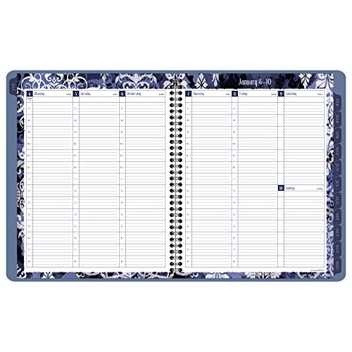 Column ruled weekly spread includes appointment times from 7:00 a.M. - 8:00 p.M. For hourly planning. Ruled notes space also included for weekend days.