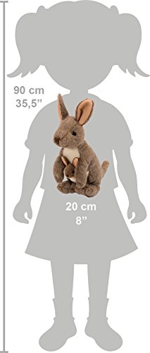 This cute 8-inch kangaroo is double the fun, with a baby Joey tucked inside its mother's pouch. Both of these stuffed kangaroos are covered in soft gray fur, with tall pink ears. Hop your way to fun with this marsupial duo!Feature